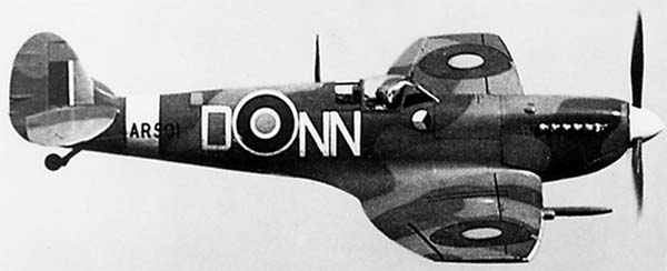 Wing Leader Lt./Col. F. Cole flying by in his Spitfire DN-N from