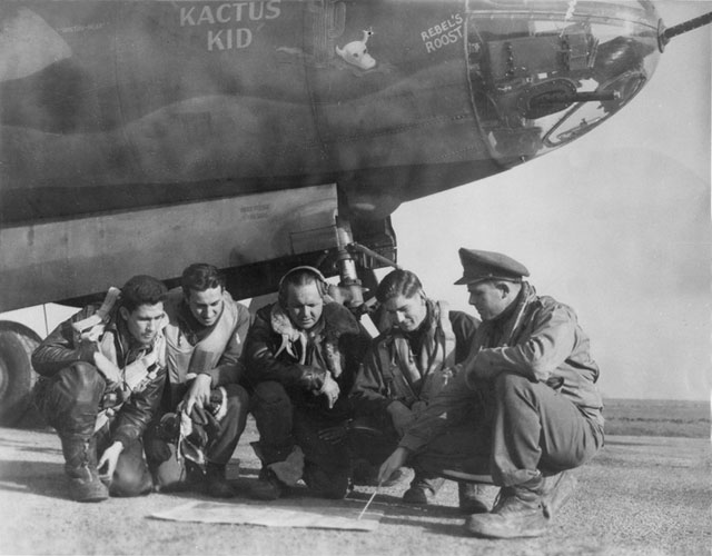 Delisso-Waist Gunner, J. Johnson-Tail Gunner, H.L. Hanson-Top Turrett, C.B. Buttler-Bombideer and J.F. Gray-Pilot