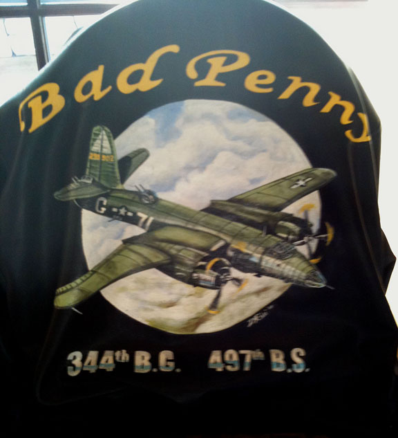344th BG Bomber jacket with artwork belonging to Chris Horn.