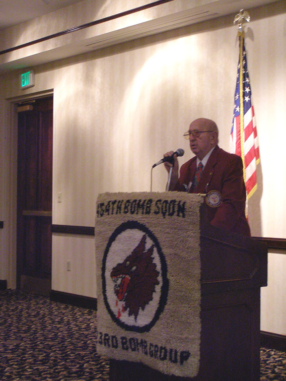 Brad Urey new President of the 454th Squadron Reunion association speaks at the