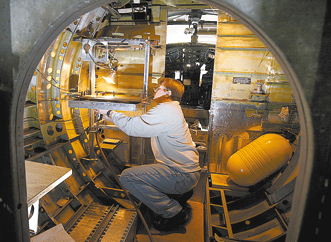 B-26 REBUILD Dave Pawski works to rebuild a radio rack inside a B-26